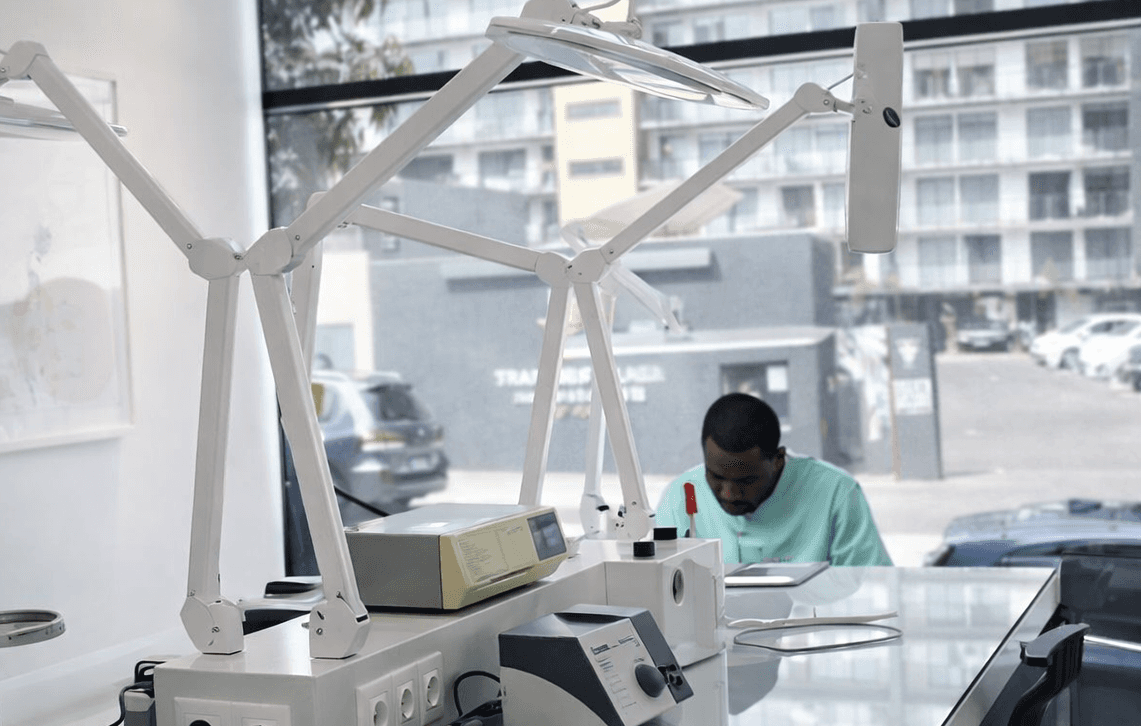 The facilities were designed and integrated by the Irmãos Chaves group within the Talatona Palms Residence complex in Talatona, Luanda. By bringing laboratory work and clinical practice together in the same environment, the project enables a more direct relationship between diagnosis, design and fabrication of dental solutions.
