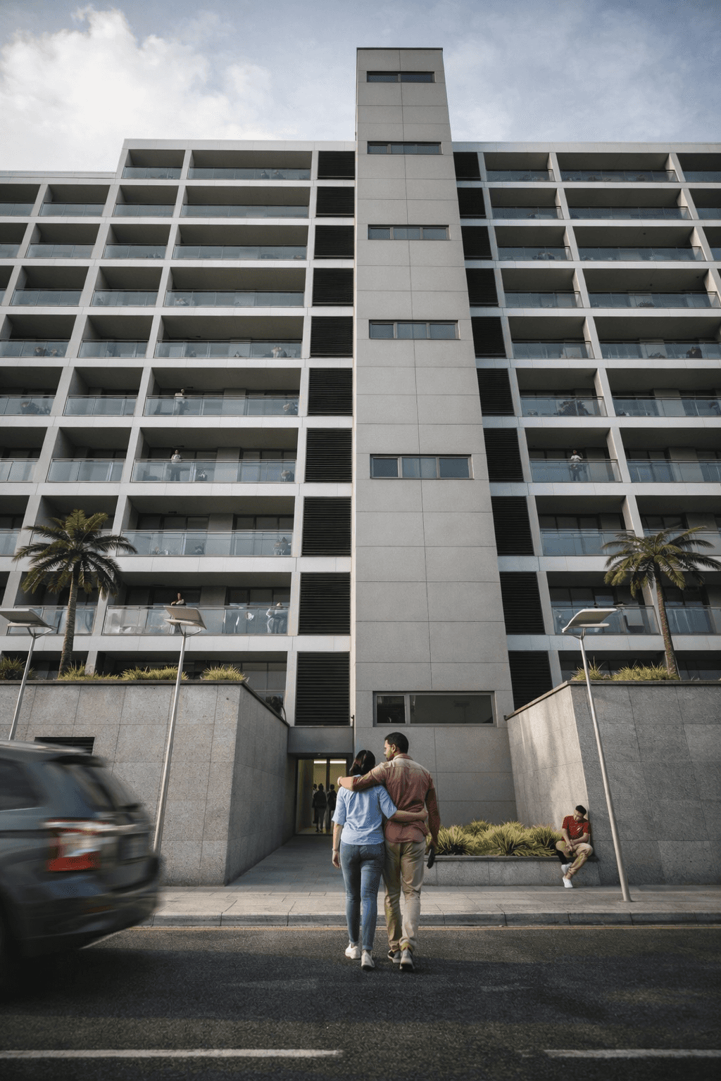 Talatona Palms Residence was conceived to provide spacious residential units within a secure condominium environment. The apartments are organised in modern configurations, typically ranging from two- to three-bedroom units. Each residence includes generous living areas, equipped kitchens, balconies, and private parking, together with technical features such as air conditioning, acoustic and thermal insulation, and integrated infrastructure for communications and utilities.