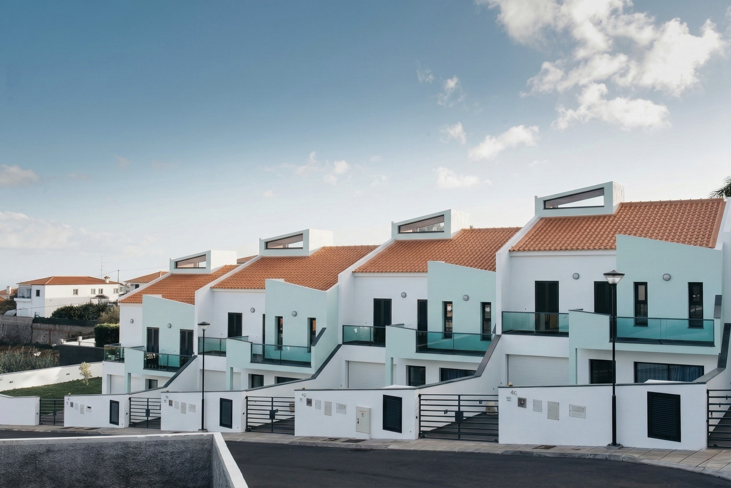 Inspired by the concept of a Mediterranean village, the development stands out for its careful volumetric composition and urban design. The houses were positioned across different elevations and alignments, avoiding rigid repetition and creating a more dynamic and harmonious architectural landscape. Particular attention was given to solar exposure, views and integration with the terrain, ensuring that each residence benefits from light, privacy and openness to the surrounding scenery.